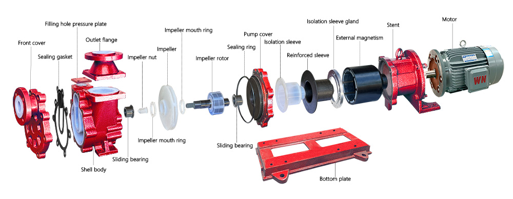 Самовсасывающие магнитные насосы с тефлоновым покрытием сочетают в себе превосходную коррозионную стойкость, герметичность и способность к самовсасыванию (максимум 5 метров), что делает их идеальными для безопасной и эффективной перекачки агрессивных химических веществ в условиях прерывистого и непрерывного промышленного применения.