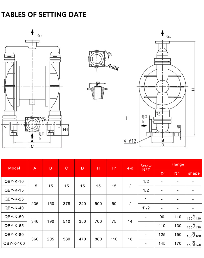 0.25" - 4" (8mm-100mm)Тефлоновый пневматический диафрагменный насос